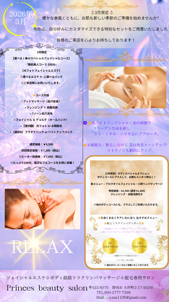 ⭐フェイシャルエステ(お顔全体)/⭐光フォトフェイシャル(Tゾーン)/⭐美巡りコース(お顔全体)に付いております。